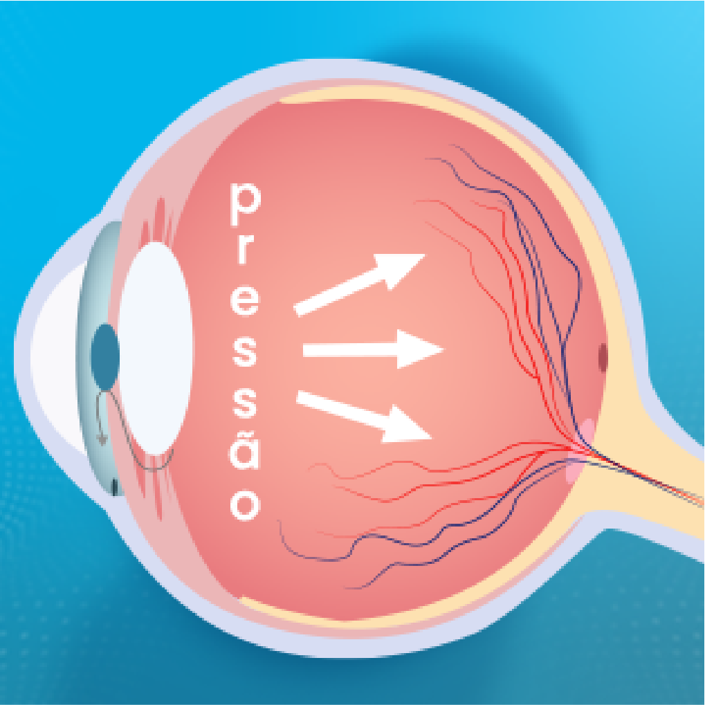 Todos os olhos possuem alguma pressão intraocular que é causada pela presença de alguma obstrução do fluxo do humor aquoso pela malha trabecular e canal de Schlemm. Se a pressão intraocular (PIO) for alta demais (maior do que 21,5 mm Hg), resultará na compressão das estruturas oculares.