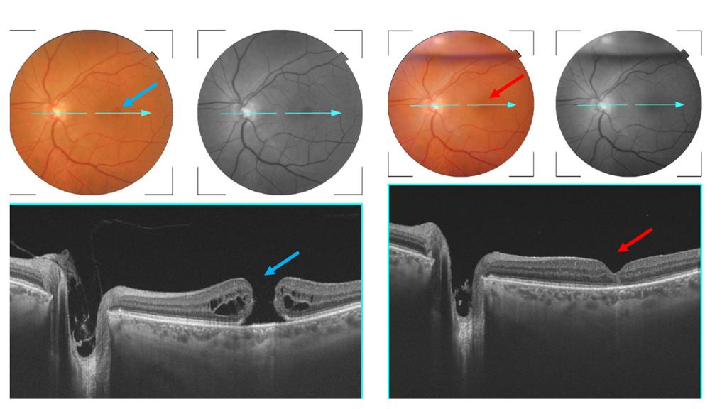 O diagnóstico é feito pela tomografia de coerência óptica, que possibilita a avaliação da interface vítreo-retiniana da síndrome de tração macular.
