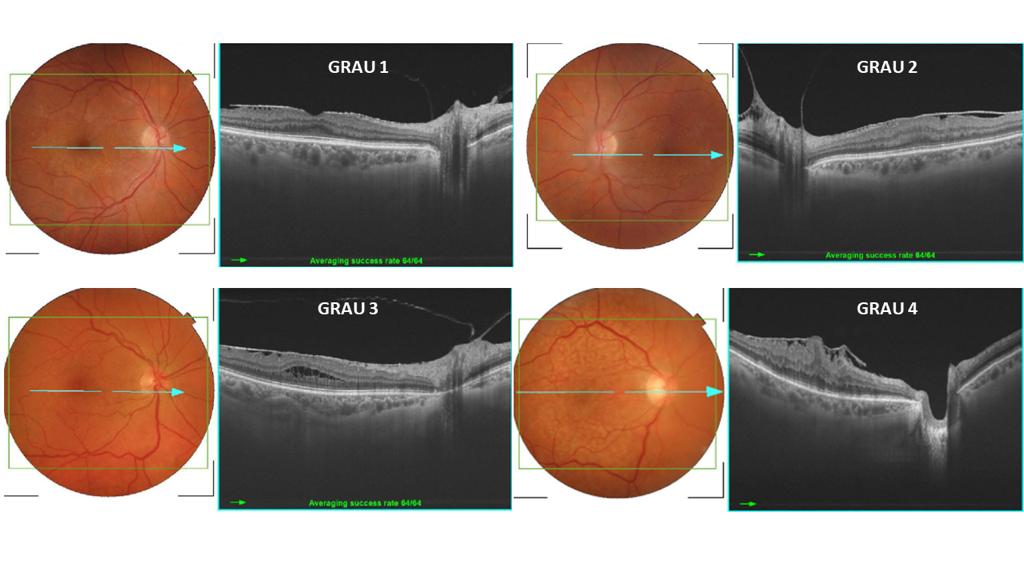 Sintomas: como dito antes, é uma condição que pode ser assintomática, mas o principal sintoma é a perda gradual da visão. Essa baixa visual pode ser causada pelo edema macular, por alterações isquêmicas da retina, hemorragias retinianas e vítreas, ou descolamentos tracionais de retina.